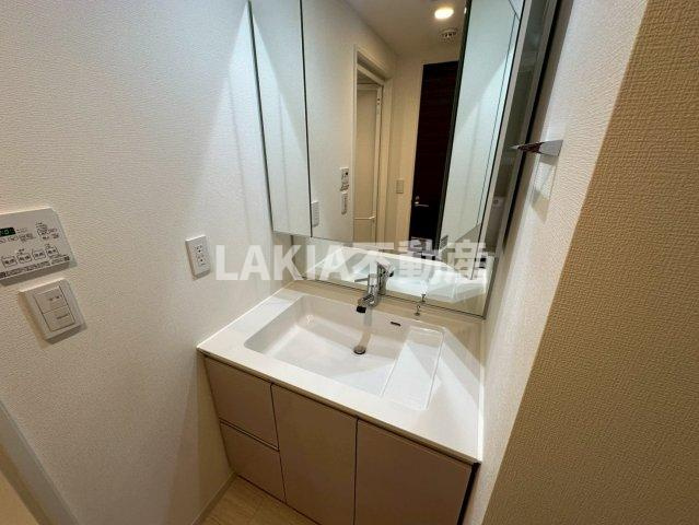 M-styleの脱衣所は、洗面・洗濯機置場・収納がコンパクトにまとまっていて、無駄のない使いやすい空間です。脱衣スペースにはゆとりがあり、朝の身支度やお風呂前後の動作もスムーズ。洗面台は三面鏡タイプで収納も豊富なので、日用品やコスメ類もスッキリ片付きます。生活感が出やすい場所だからこそ、清潔感ある内装と設備の充実さが際立ちます。毎日の生活が整いやすい印象です。
