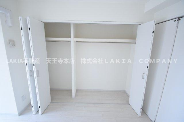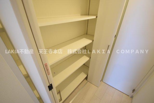オブリオポルタ上町台の収納は、各部屋にクローゼットや収納スペースが十分に確保されているため、日常生活での整理整頓がしやすい点が魅力です。洋室には大型のクローゼットがあり、衣類や季節用品をすっきり収納可能です。キッチン周りにも収納棚が設けられており、調理器具や食材の整理に便利です。玄関付近にはシューズボックスが備わっていて、靴の収納に困りません。また、収納の配置が使いやすく、生活動線を邪魔しない設計になっているため、快適な暮らしをサポートします。全体的に収納力が高く、住空間を広く使えるのが特徴です。