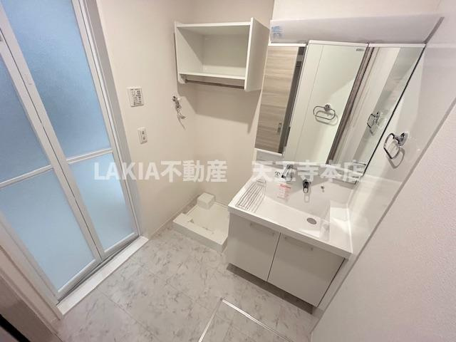 カーサルミノサ王子町の脱衣所は、ゆとりのあるスペース設計で着替えや収納がしやすく、独立洗面台や鏡が使いやすい高さに配置されているため毎日の身支度が快適に行える点が魅力で、湿気対策がしっかりと施されており換気が良好なため清潔で快適な環境を維持できることに加え、タオルや衣類を収納できる棚や収納スペースが充実しているため散らかりにくく整理整頓がしやすく、照明も明るく全体をしっかり照らす設計で見やすさに配慮されているほか、防水性のある床材が使われているため水跳ねや湿気に強く清掃が簡単で日常の手入れが楽である点も大きな特徴であり、機能性と快適性を兼ね備えた実用的な空間となっている。