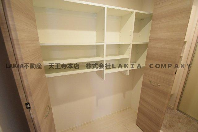 ラムココ真田山の収納の良いところは、居室内にクローゼットが設置されており衣類や生活用品をすっきり整理できるだけでなく、玄関にはシューズボックスが備え付けられていて靴の収納にも困らず、さらに洗面脱衣所の近くにも収納スペースが確保されているためタオルや洗剤などの日用品を使用場所の近くにまとめて管理でき、これらの収納が適切な場所に配置されていることで生活動線を邪魔せず、居住空間を広々と快適に保つことができる点です。