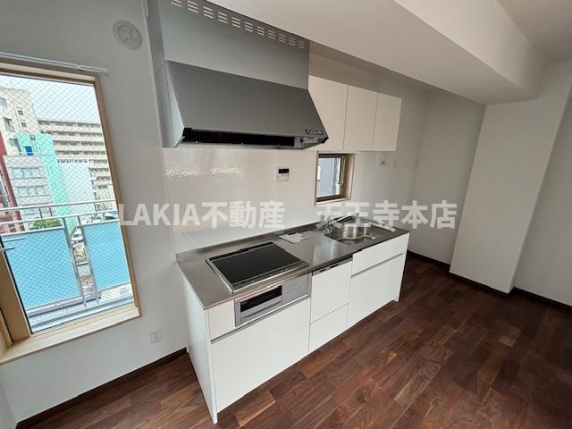 キッチンは、デザイン性と機能性を兼ね備えたシステムキッチンを採用しています。リビングダイニングと一体感のある配置で、空間全体を見渡せる開放的なつくり。圧迫感が出にくく、お料理中でも会話やテレビを楽しめるレイアウトです。調理スペースはしっかり確保されており、まな板や調理家電を置いてもゆとりのあるサイズ感。コンロやシンクのバランスも良く、自炊派の方にもご満足いただける仕様です。収納も豊富で、調理器具や食器類をすっきりと整理できます。築浅物件ならではの清潔感ある設備仕様もポイント。毎日使う場所だからこそ、使いやすさと見た目の美しさの両方を重視したい方におすすめです。リビングダイニングとの動線もスムーズで、配膳や片付けも効率的。日々の暮らしを快適にサポートしてくれる、完成度の高いキッチン空間となっています。